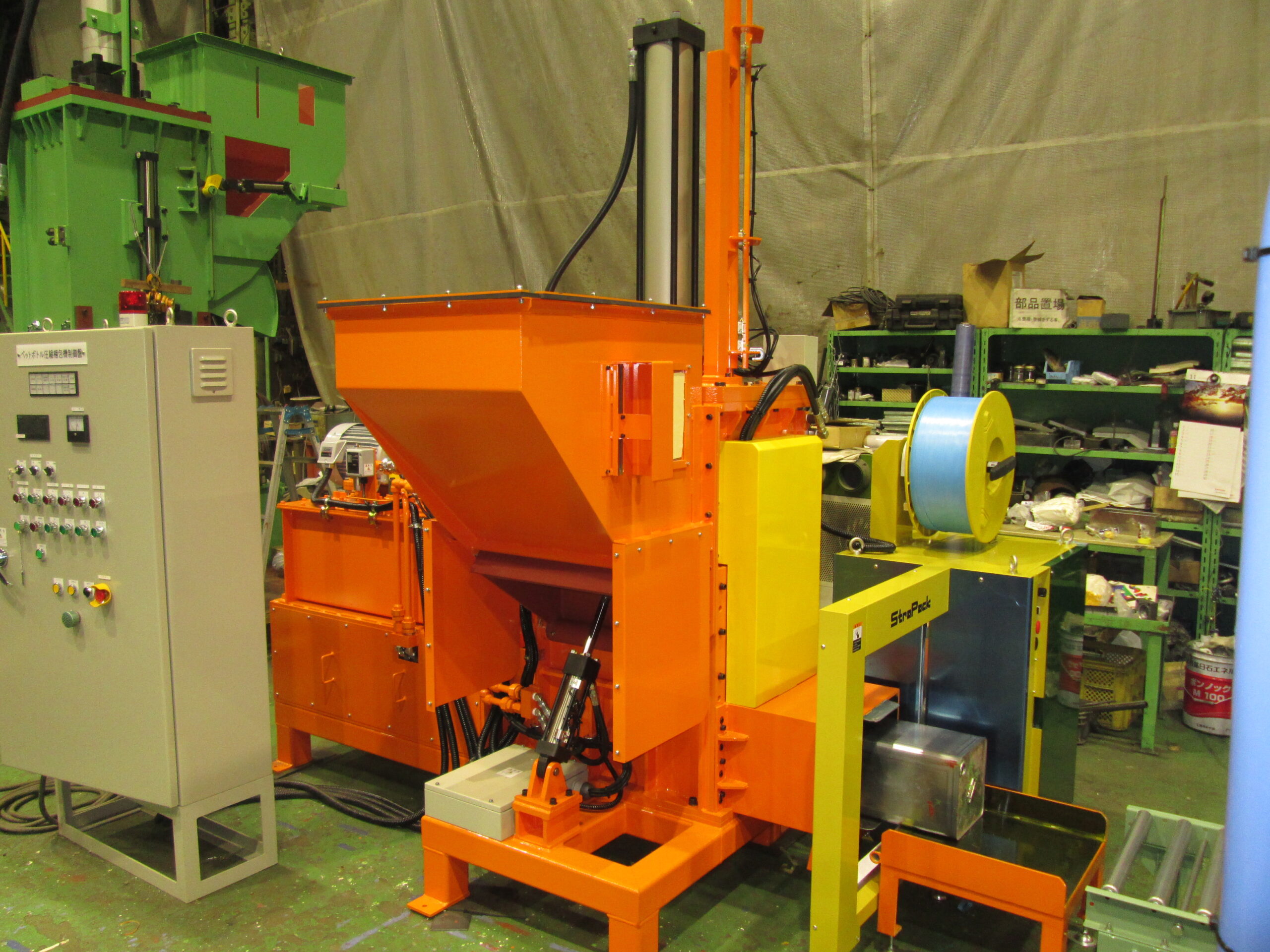 プラ容器圧縮梱包機